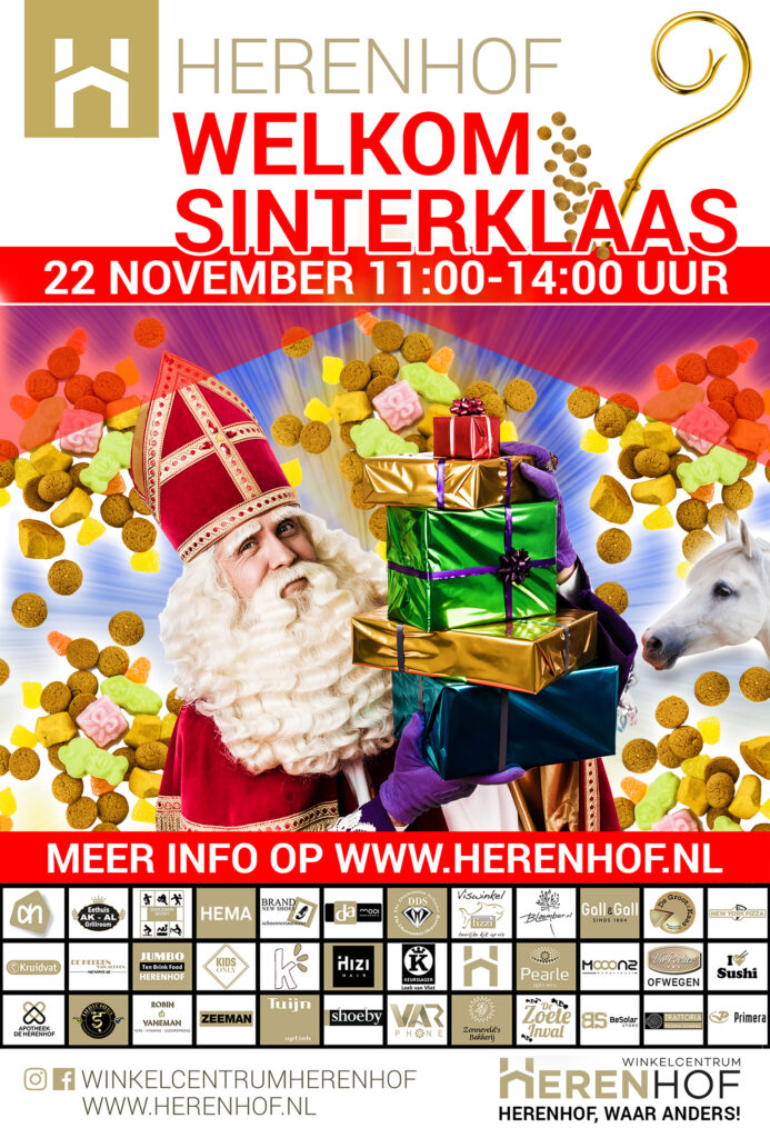 Ook dit jaar weer presenteert winkelcentrum de Herenhof vanaf een podium een interactief Sinterklaasfestijn met leuke en vooral verrassende elementen. Vanaf 12.00 uur kom je paardje Amerigo tegen. Dit paardje is heel bijzonder want hij kan zingen!!
